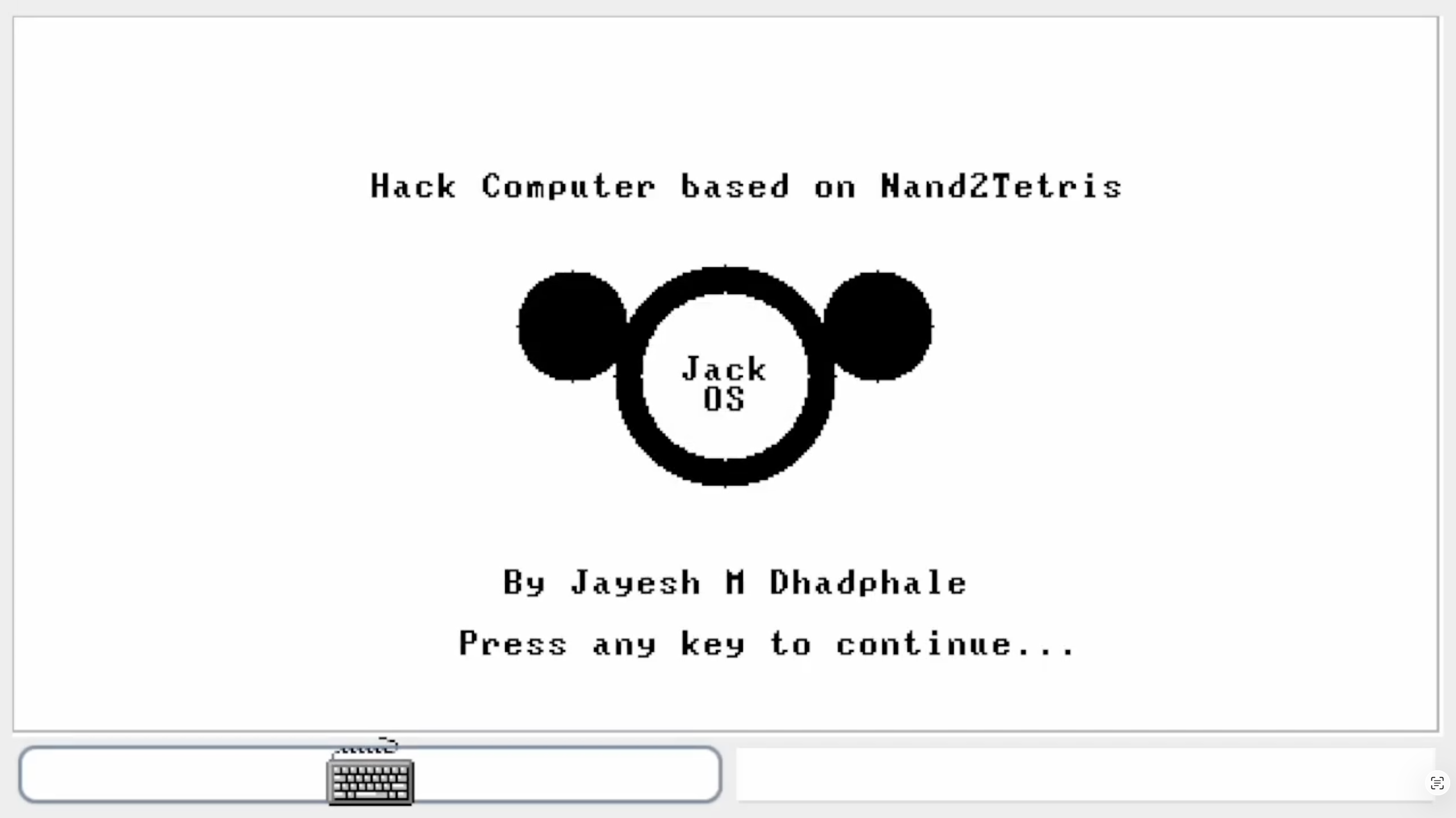You can find the complete implementation at GitHub: JayeshMD/Nand2Tetris. When the computer starts, the number of variables gets initialized. The following image shows the output on the display once the computer starts.